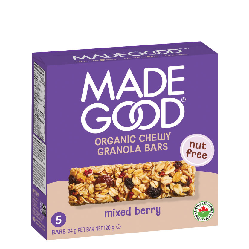 純燕麥,龍舌蘭蜜,糙米糖漿,葡萄乾,糙米,葵花籽油,菊糖,紅莓,濃縮蘋果汁,糖蜜,紅桑子,藍莓,蔬菜提取物(菠菜,西蘭花,胡蘿蔔,蕃茄,甜菜,香菇),天然調味料,瓊脂。 致敏原:含有穀類(麩質)製品。